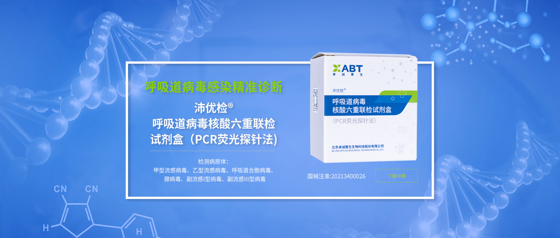 北京卓誠(chéng)惠生生物科技股份有限公司是專(zhuān)注于為醫(yī)療衛(wèi)生領(lǐng)域病原微生物檢測(cè)提供解決方案的高新技術(shù)企業(yè)。公司總部位于北京市中關(guān)村生命科學(xué)園,擁有符合GMP要求的潔凈廠(chǎng)房,通過(guò)ISO13485、ISO9001質(zhì)量體系認(rèn)證。公司擁有多種多重PCR技術(shù)平臺(tái),開(kāi)發(fā)了800余種核酸檢測(cè)試劑盒。查看詳情