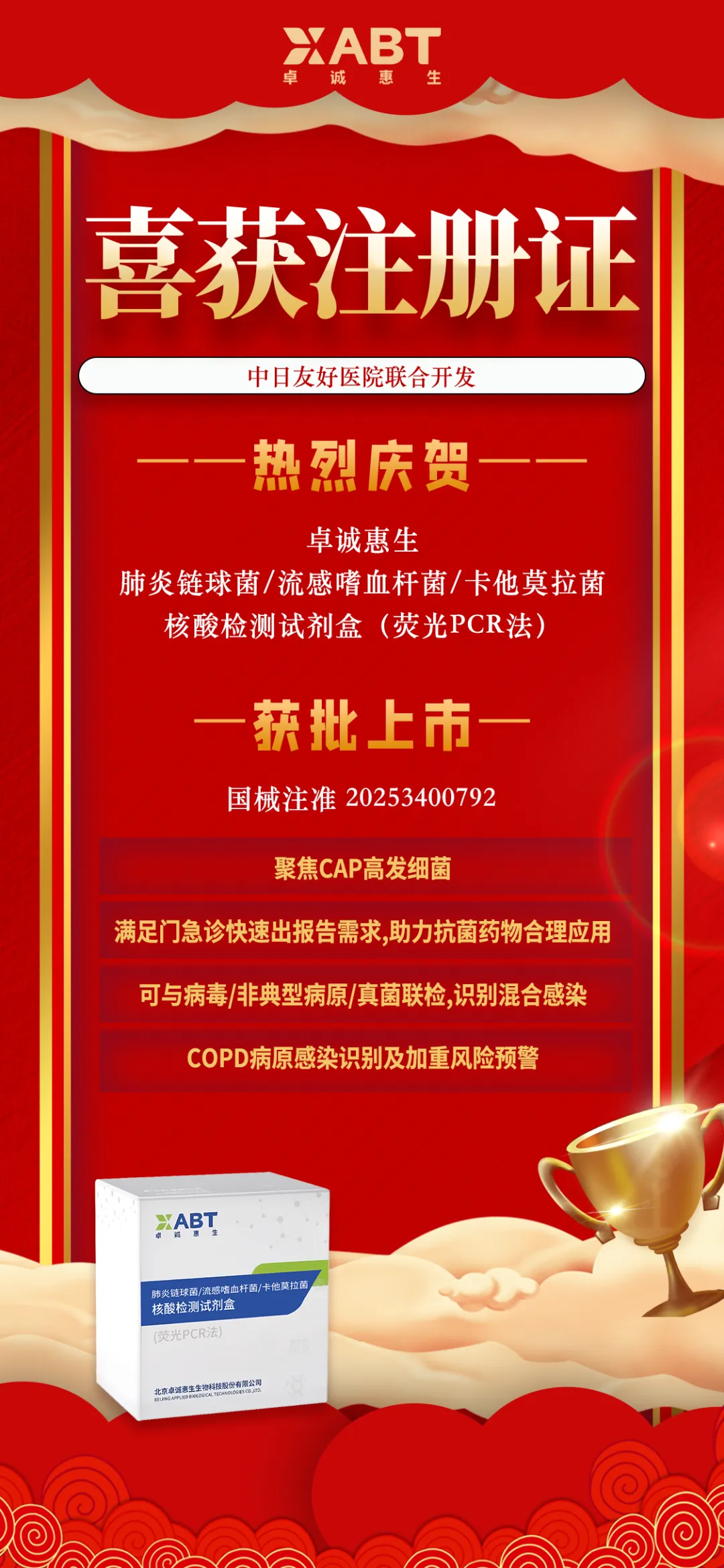 重磅|卓誠惠生“肺炎鏈球菌/流感嗜血桿菌/卡他莫拉菌核酸檢測試劑盒 (熒光PCR法)”正式獲批上市!