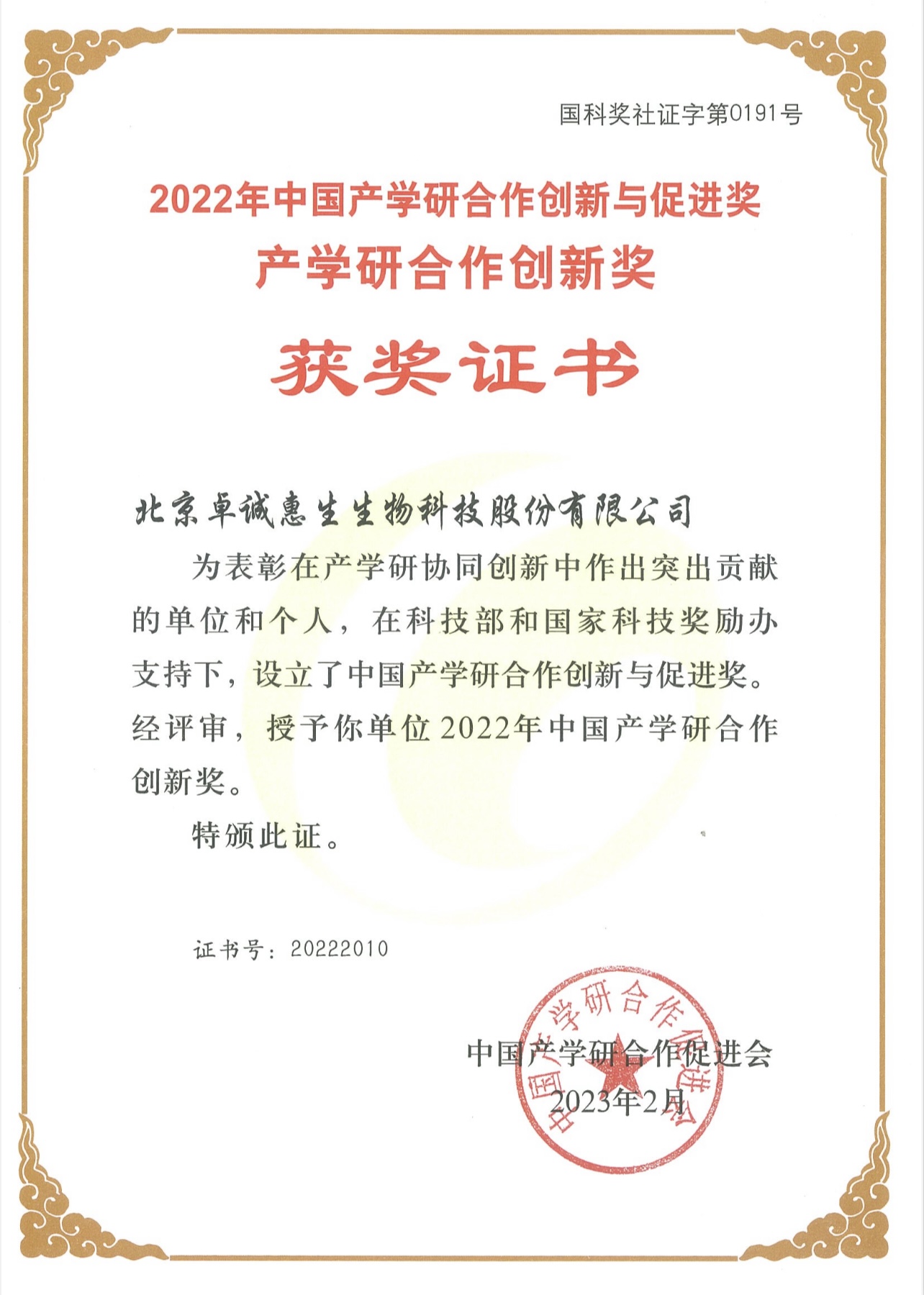 - 中國產(chǎn)學研合作創(chuàng)新示范企業(yè)